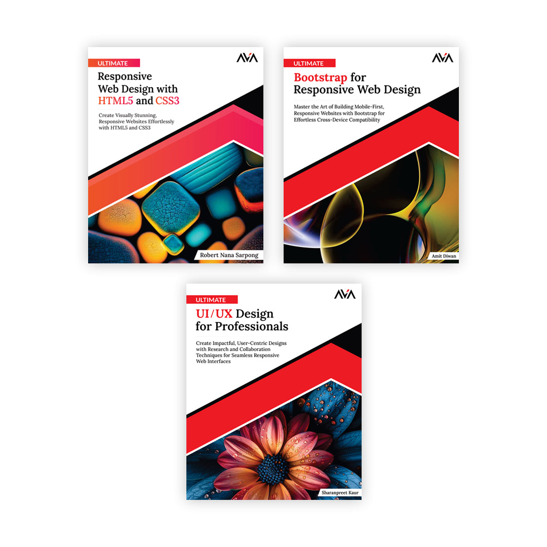 This bundle is designed for aspiring web designers, front-end developers, and UI/UX professionals seeking to master responsive design and build visually stunning websites. Learners will gain hands-on expertise in HTML5, CSS3, and Bootstrap while learning to design user-centered, engaging, and professional interfaces. By completing this path, readers will be ready to create modern, mobile-first websites and impactful UI/UX designs.